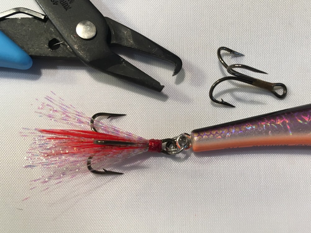 Another great summer addition is the dressing up of a crankbait’s rear treble hook. Removing the standard plain treble in favor of one dressed with hackle, hair or krystal flash can provide an enticing trigger for fish that are following a bait. Additionally, these dressed hooks extend the profile of the bait some, making it look a bit bigger and a lot like a larger meal for the same amount of effort. Tie some up on your own or grab a few from your favorite tackle shop or online dealer to pop into the rear split ring of a crankbait and add some extra flash and attraction – perfect for summer trolling.
