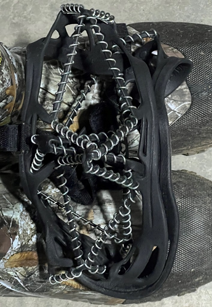 There’s an adage that no ice is safe ice. The meaning is rather simple in that no matter how solid a stretch of a lake, pond or river might look, there are many things that can weaken it resulting in breakthroughs and imminent danger. Even good, solid ice that can hold a truck still poses a threat, and it’s one I’ve dealt with a few times, and that comes down to the slippery nature of the surface. I learned long ago after going airborne, backside over teakettle, that a pair of ice cleats goes a long way in helping to prevent falls and spills on the ice – a surface as unforgiving as concrete. Investing in a pair of ice creepers or cleats that can be easily placed on boots is a must, especially if you plan on sprinting to those first tip-up flags of the season. Get that traction to keep your ice angling adventures on track and remember to take them off if you’re wearing your boots on smooth concrete or the tackle shop’s tile floor.